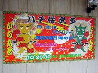 「パチ佞武多」。五所川原の名物といえば立佞武多(たちねぶた)。高さ20メートル以上にもなる巨大なねぶたである。街路の電線が障害となって大正時代に姿を消したが,平成8年に復活した。 それにしても「パチ佞武多」とは絶妙なネーミングだ。 |