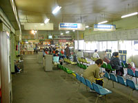 弘南バスターミナル。外観も趣があったが,中はもっとすごかった。奥の売店は昭和30年代を通り越して昭和20年代の雰囲気そのままではないか。五所川原から津軽鉄道の沿線にかけては,まったく時間を何十年かさかのぼったような光景が展開する。 |