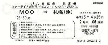 もう二度と乗りたくないと思っていた夜行バスだが,今回の旅行では札幌までの往復にバスを使うことにした。その理由は一に費用の問題である。JRで往復すると15800円,バスなら往復10200円。この差は大きい。