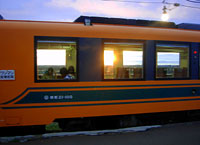 今日中に少しでも南に進もうということで,秋田へ向かう。寝台特急の座席利用であるが,立席ではなくきちんとした指定席として利用できる。しかし旧来の4人ボックスよりは余裕があるものの,特急なのに直角の座席というのはあずましくない。それに秋田に近づく頃には毛布・シーツの準備をするために,いったん席を空けなければならなかった。青森→秋田の特急は夕方以降の3本がこうした寝台車の座席利用となるわけだが,旅の人にはもの珍しく感じられるが,地元の人はかわいそうだ。