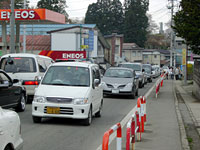 道路は渋滞中。車の中の疲れた顔を見るとこっちまで疲れてしまうから,なるべく車内は覗き込まないようにする。車のナンバーは全国各地のものが見られた。しかし北海道のナンバーはない。