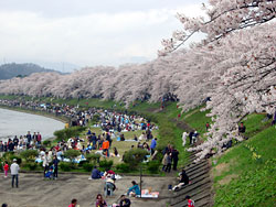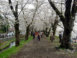 日本のさくらの名所100選・桧木内川の桜並木。こちらはソメイヨシノ。ぴったしかんかんである。