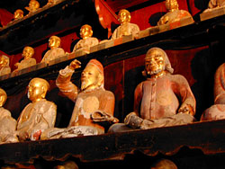 これらの羅漢像は京都の仏師9人により1731年から4年かけて制作されたもの。1つ1つの表情を見ていくと静かに時間が過ぎていく。右の写真はマルコポーロ像とフビライ像。