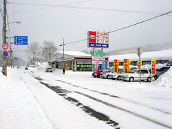 国道452号。こんな山の中で自動車販売店が頑張っている。