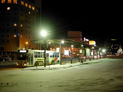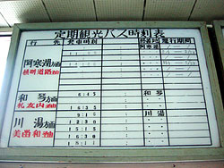 バスセンター内に阿寒パノラマコースの時刻表が掲示されていたが,もう何十年も前から変わっていない感じだ。ほんとうに髪の毛一本で世界的観光地を結んでいるバスなので,何とか今後も走り続けて欲しいものだ。