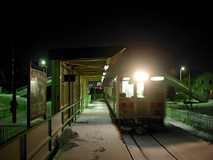 JR摩周駅から17時6分発釧路行き普通列車に乗る。ちょうどここで交換となる17時5分発の網走行き普通列車に駅前旅館さんが乗車していたはずだが,窓ガラスが曇っており向かいの列車の車内は見えなかった。