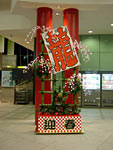 広々とした開放感のある駅舎。「迎春」とは気が早い。