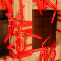 こうなったら埴山姫神社で赤い紐を結ばなければならぬ。バスの時間も迫っていたので,タタタタタタッと石段を駆け下り,格子に紐を結びつける。
