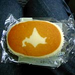 バスの中で北海道チーズ蒸しパンを食べる。北海道にも同じようなパンはあるが,北海道の模様は入っていない。
