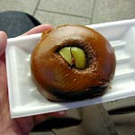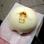 列車の発車時刻まで少し時間があったので,駅前のお土産屋で饅頭を二ついただく。