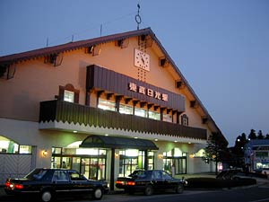 これがまったく素晴らしい。広々とした岩風呂に源泉がなみなみと注がれていた。お湯は甘味のあるアルカリ泉だった。露天にもかかわらず,シャワー付きの洗い場があった。北海道ではありえない。