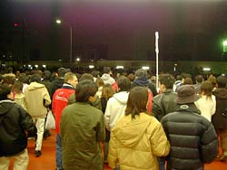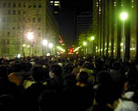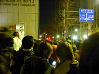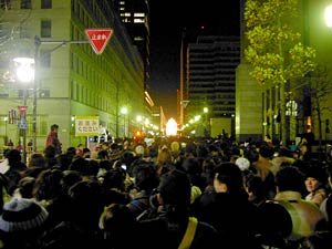 年越しの瞬間に点灯が見れないのではないかと心配したが,いちおう日付が変る前に電飾が前方に見える位置までやってきた。しかしここから先はまったく前に進まなくなった。