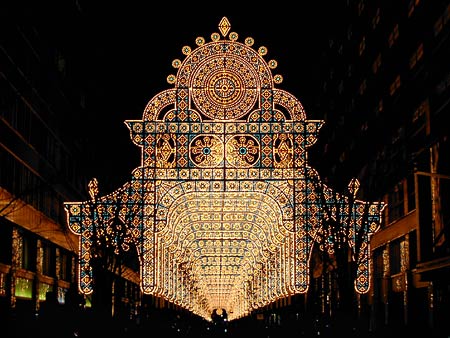写真で見たとおりのきらびやかな電飾。ただいまの時刻0時37分。前の写真からこの場所に来るまで37分もかかったのだ。