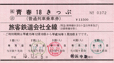 12月27日,28日は青春18きっぷ