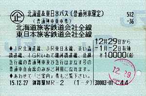 12月29日〜1月1日は北海道&東日本パス