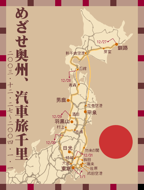 まず最初の決断をしなければならないのは元日の航空券が売り出される11月1日である。昨年は全日空で1日乗り放題10000円というめちゃくちゃな運賃があったが,今年は通常の超割,バーゲンフェアの適用となった。旅行の行程もまだ白紙だが,とりあえず帰りの飛行機を決めねばならぬ。例えば琴平で初詣をして,松山→大阪→千歳,と飛行機を乗り継ぐことなども考えられたが,昨年の反省から初詣は雪のあるところでしたい。雪があって,かつ鉄道でのアクセスが可能なところ,と考えるとやはり平泉の中尊寺しかない。一昨年も中尊寺で初詣をしているが,良いところは何度行っても良いのである。そこで今年の初詣は中尊寺に決めて,飛行機は花巻→千歳の便を取った。