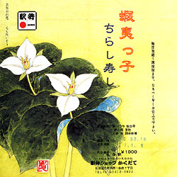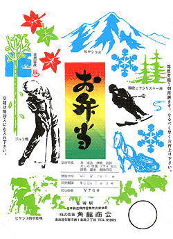 蝦夷っ子ちらし寿し,1000円,2001.6.30購入 ★★★この日限りで廃止になった下中川駅,芦川駅を訪問した帰り,特急スーパー宗谷の車内販売で購入した。五目寿しの上に数の子とイクラ,トビっ子が載っている。包み紙がきれい。 |