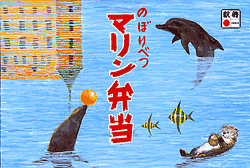マリン弁当,850円,2003.2.20購入 ★★★★この弁当は1995年9月24日に購入している。そのときにはもうこの弁当を食べることはないだろうと思ったが,8年たってもまだ同じ弁当を売っていた。登別マリンパークニクスのオープンを記念して1990年に発売された弁当である。海の幸を使用した幕の内弁当で,注文してから温かいご飯を詰めてくれる。おかずは冷たいが柔らかくておいしい。 |