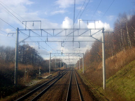 北広島を出ると列車は少し高いところを走り,北広島の市街を見渡すことができる。北広島は都市計画により,あえて街路をねじまげてつくられた市街で,それがやや雑然として見える。いくらも走らないうちに西の里信号場を通過する。