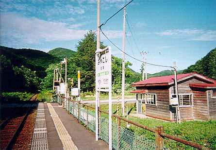 集落は川を渡ったところにあり駅周辺には何もない。2間×3間の大きな木造待合室があるが,これだけ隠れたところにあると落書きさえも見当たらない。和式便所付き。