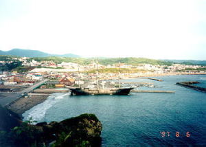 開陽丸からすぐ。中村家や横山家などは年配の観光客が多いが,かもめ島は江差で随一の若者の賑わいがある。島の入口にはこの辺りでは珍しくコンビニがある。散策路・キャンプ場・海水浴場充実。(H9.8訪問)