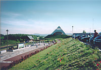 駅から3km。パッチワークの路のメインスポット。美瑛に3つある展望公園の中では最も観光客が多い。有人の観光案内所もある。展望台はピラミッド型で美瑛市街の向こうに十勝岳連峰を望み,旭川のほうもよく見える。観光バスも多く立ち寄るが,ここは貴重なトイレタイムになるらしく,男子便所にも平気でおばさんたちが入ってくる。(H10.8訪問)