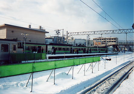 左手に札幌運転所の車庫を見ながら発車し,連絡線と並行して手稲駅に滑り込む。