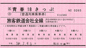 軟券(常備券)の青春18きっぷ。JR東日本では全廃されており,JR北海道でも札幌駅の一部窓口や宗谷北線の駅など限られた駅でしか売っていない。