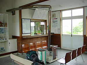 簡易委託駅で,窓口に「青春18きっぷ発売してます」の張り紙がある。今では珍しい軟券の青春18きっぷを発売している(2002年7月確認)。