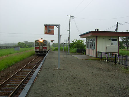 浦幌の新吉野駅と同じ形の待合室。駅前は小市街で店2件と郵便局,消防がある。小さい市街ながらも,広大な牧場地帯の拠点として風格を感じる。