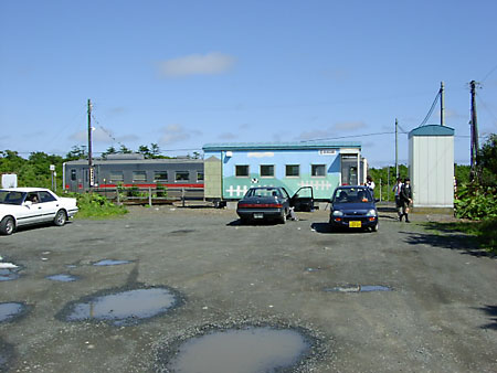 牧場の中にある貨車駅だが,駅前に発泡スチロールの工場があってのどかという感じではない。高校生の通学利用があるが,ほとんどの学生は親に車で送り迎えしてもらっている。
