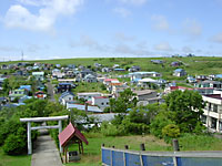 神社からの眺め。駅は丘の上,右手に見える住宅のさらに奥にある。標高差50mもあっては誰も利用することがいない。