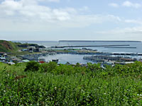 花咲港へは駅裏の砂利道からアクセスするのが近い。途中,漁港を見下ろし眺めがよい。