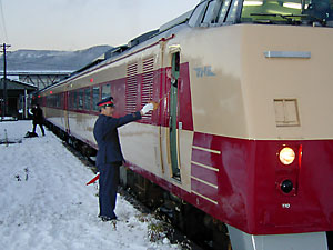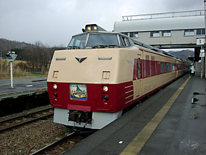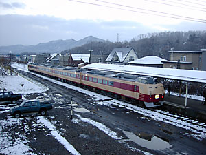 | キハ183系4両編成。トマム到着時はなぜか「おおぞら」のヘッドマークを掲出していた。この列車は釧路行きではない。 | |