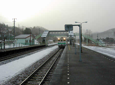 駅舎は近代的で特に何もないが,3線構造,有効長550m,スノーシェルターに挟まれた一直線の構内は,石勝線のスケールの大きさを感じさせる。駅向かいには夕張市の銘産センターがあり,なかなか賑やかな場所である。滝ノ上公園までは徒歩5分で,紅葉の時期でなくとも散策するのは気持ちよく,途中下車にはおすすめの駅だ。