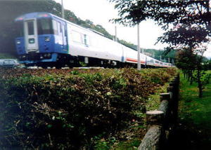 ![]() 公園から見る石勝線の特急 |