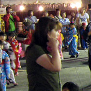 仮装の雰囲気はこの盆踊り独特で,何の仮装なのか理解に苦しむものが多かった。中には,この道何十年というような筋金入りの仮装者もいたようである。踊りは20時から21時まで,1時間ぶっ続けで行われた。