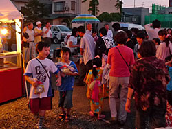 太鼓は市内の和太鼓会鼓春の少年たちが少数精鋭で担当しており,子供,大人盆踊りを通じて,地味ながら破たんのないばちさばきを見せていた。