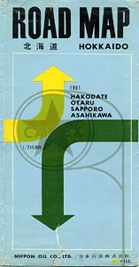 古い割にしゃれた道路地図であるが,大変残念なことに破損により北海道の南側1/4しか残っていない。