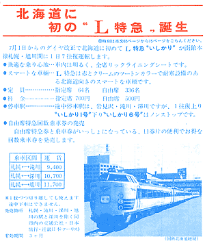 50年7月改正では,道内初の電車特急「いしかり」が誕生した。耐寒性能が十分ではない485系特急車両を使用しての運行で短命に終わっている。旭川〜札幌間ノンストップで1時間36分を要していたが,現在では途中深川,滝川,砂川,美唄,岩見沢に停車しても1時間20分で到達する。