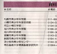 巻末には温泉,博物館,資料館,観光協会,マスコミなどの連絡先がついている。しかしこれが実にいい加減なもの。図は資料館・記念館の項であるが,青少年科学館に混じってなぜ小樽文学館や旭川兵村記念館が掲載されているのか理解できない。
