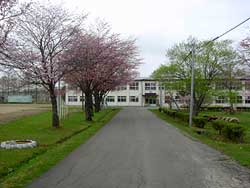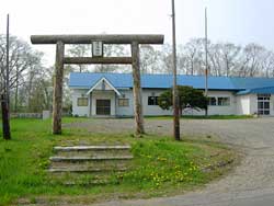 この3月に廃校になった標茶町立中虹別小学校。白樺並木が良い感じだった。右は学校の隣にあった中虹別神社。