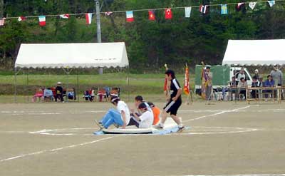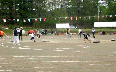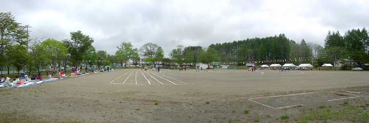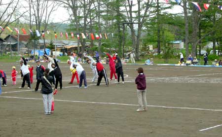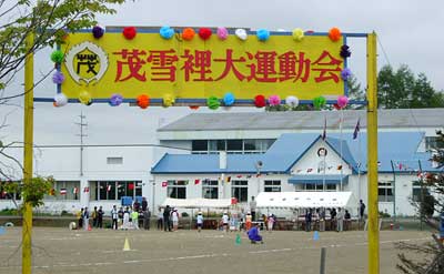 9時40分,鶴居村幌呂中学校到着。幌呂は独自の農協を持っているほどの大きな集落で,町の学校の運動会という感じだ。グランドも広々としている。会場は中学校だが,小中の合同開催となっている。