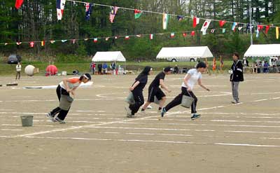 次は中学生全員による障害物競走。全員といっても15人くらい。
