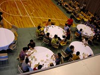 8時45分,摩周観光文化センター到着。チケットを買っていないので,受付で「入場券はいりますか?」と聞いてみたが,「ちょっとわからないです」と言われた。館内にはきれいな着物を着たオバサン方がたくさんいて異様な雰囲気である。会場をのぞいてみたが,どうも観客らしき人はいないようだったので,もういちど受付に戻り,「一般の人は入れますか?」と聞いてみたら,「見学ですか,どうぞ」と言われた。