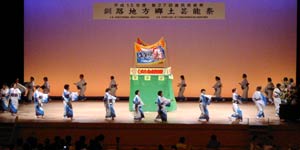 蕗まつり音頭には輪踊り用とステージ用の組み踊りの2パターンがある。組み踊りはブラスバンドでいうドリル演奏のようなもので,プロでなければ踊れないものだ。写真で見ても動きがピシッとそろっている。他町村の踊りとは歴然とした格が違いがある。