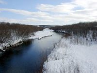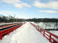 雪裡川にかかる道道阿寒標茶線の橋。車道の橋とは別に立派な人道橋があり,早朝にはカメラマンがずらりと並ぶという。雪裡川はタンチョウのねぐらになっているからである。川の中なら天敵に襲われることもなく,水温は気温よりも高いので,タンチョウは川の中で寝るのだ。