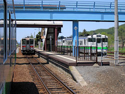 臨時列車と普通列車の交換で,3列車がそろった和寒駅。