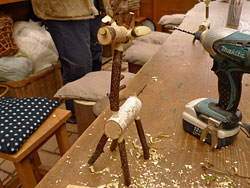 工房には,野山の木で作った素朴な置物がたくさんあった。
