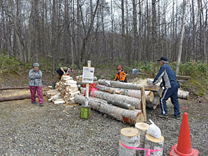 シラカバ風倒木の無料配布。徒歩ではどうにもならない。